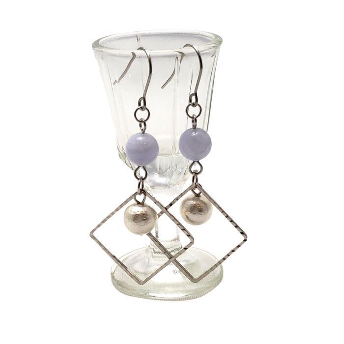 ブルーレースアゲート パワーストーン ピアス コットンパール 天然石 ゆらゆら めのう 瑪瑙 アクセサリー ハンドメイド おしゃれ ギフト プレゼント レディース 人間関係 ピアス 金属アレルギー 対応 ギフト イヤリング変更可