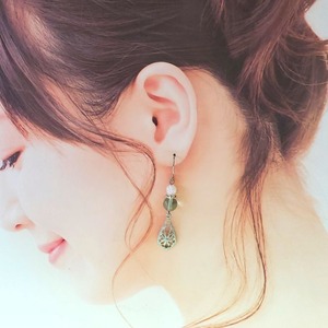 幸運を引き寄せる グリーンフローライト パワーストーン ピアス 天然石 レインボークォーツ スピリチュアル かわいい おしゃれ ギフト 開運 金属アレルギー 対応 チタン イヤリング 変更可 メール便 送料無料 アクセサリー