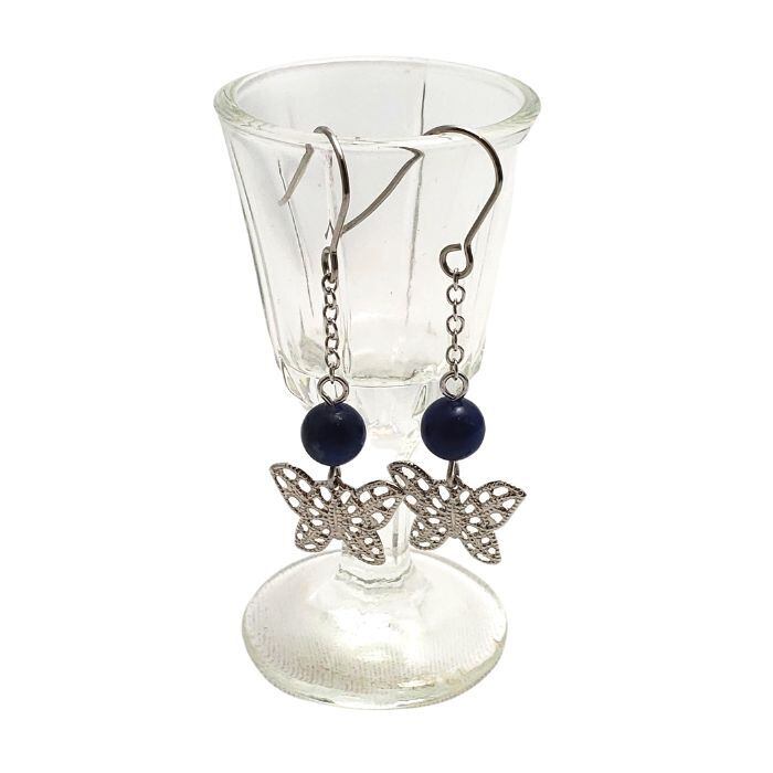ソーダライト パワーストーン ピアス 天然石 目標達成 決断力 蝶々 金属アレルギー 対応 ギフト チタン イヤリング変更可 送料無料 誕生日 アクセサリー