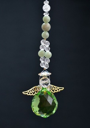 幸運を引き寄せる天使のサンキャッチャー!太陽の光が差し込むと、お部屋の壁にたくさんの虹ができ、 とても綺麗です。 また、幸運が舞い込む開運グッズとして知られています。五徳を高め人生の成功と繁栄を象徴している翡翠です。