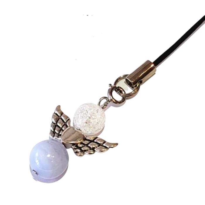ブルーレースアゲート パワーストーンストラップ 天然石 水晶 クリスタル 天使 エンジェル シルバー 金具銀色 携帯ストラップ スマホ お守り プレゼント ラッピング無料 メール便 送料無料 誕生日 アクセサリー