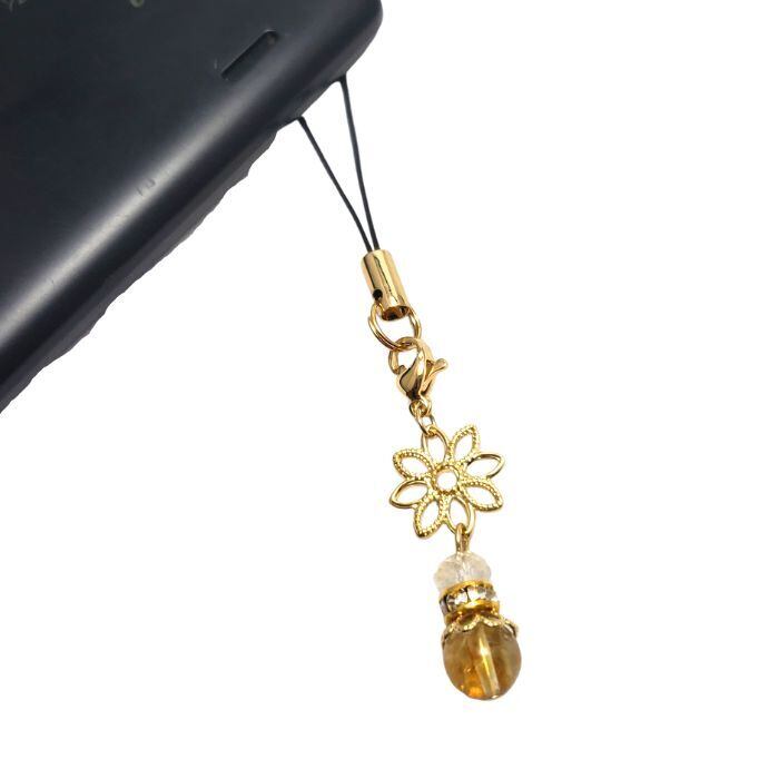 金運 シトリン 携帯ストラップ クリスタル パワーストーン ストラップ 天然石 スマホ アクセサリー 水晶 黄色 イエロー スマホ お守り プレゼント ラッピング無料 メール便 送料無料 アクセサリー