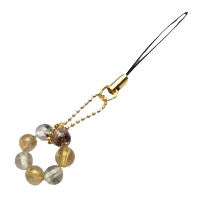 ルチルクォーツの金運、ガーデンクォーツの財運、ビジネスのお守りとなるパワーストーンストラップです