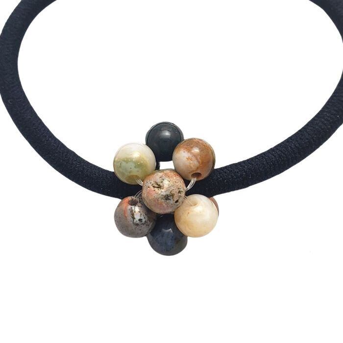 ヘアゴム オーシャンジャスパー ヘアアクセサリー パワーストーン 信念を強める 髪飾り 天然石 アクセサリー 黒ゴム ハンドメイド 大人っぽい シンプル かわいい 誕生日プレゼント ギフト 送料無料 誕生日