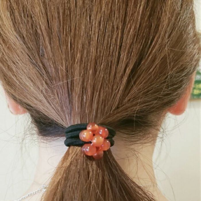 7月の誕生石 ヘアゴム オレンジカーネリアン 髪飾り パワーストーン 天然石 赤色 アクセサリー 黒ゴム ハンドメイド 大人っぽい シンプル かわいい 誕生日プレゼント ギフト 送料無料