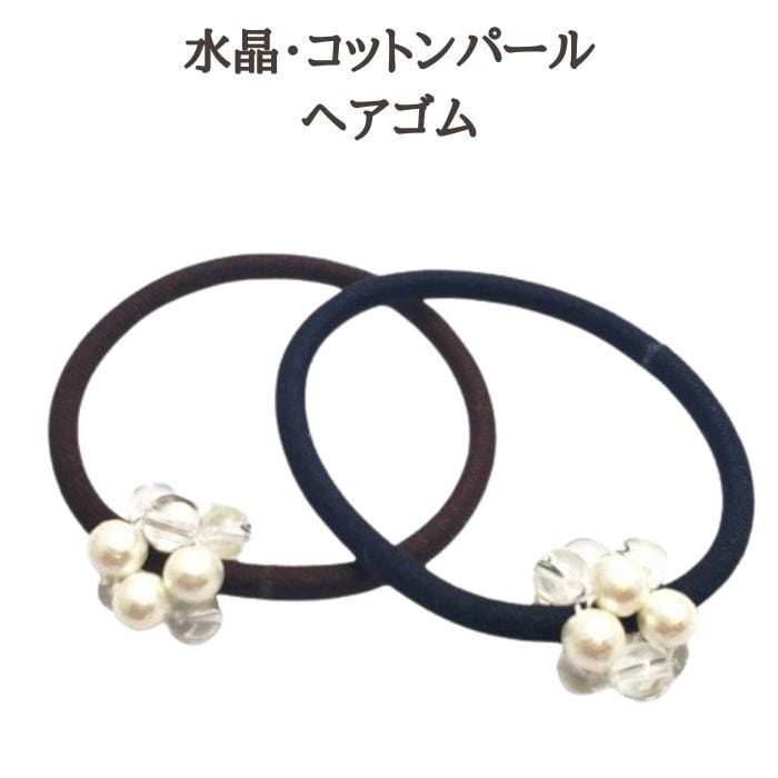 髪飾り ヘアゴム コットンパール クリスタル 水晶 天然石 アクセサリー 黒ゴム 茶ゴム パール ハンドメイド シンプル ヘアアクセサリー パワーストーン プレゼント ギフト 送料無料 入学式