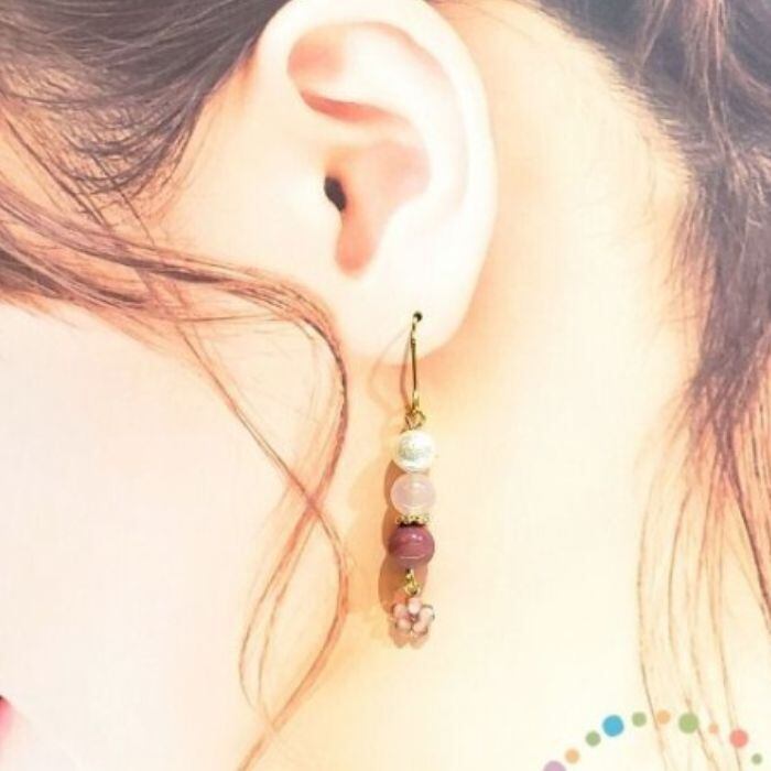 ローズクォーツ シリシャスシスト パワーストーン ピアス 天然石 コットンパール ピンク 花 良縁 結婚 ゴールドレディース プレゼント ピアス 金属アレルギー 対応 イヤリング変更可 送料無料