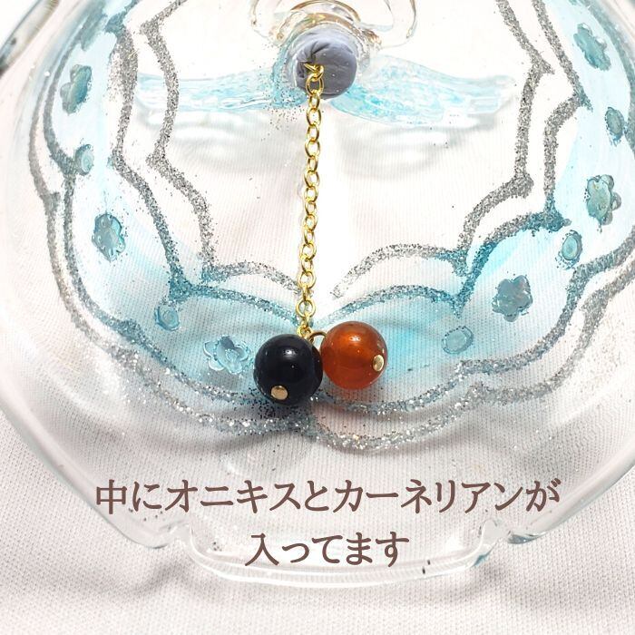 ○ガラスの天使ブルー(オニキス8mm、オレンジカーネリアン8mm)
