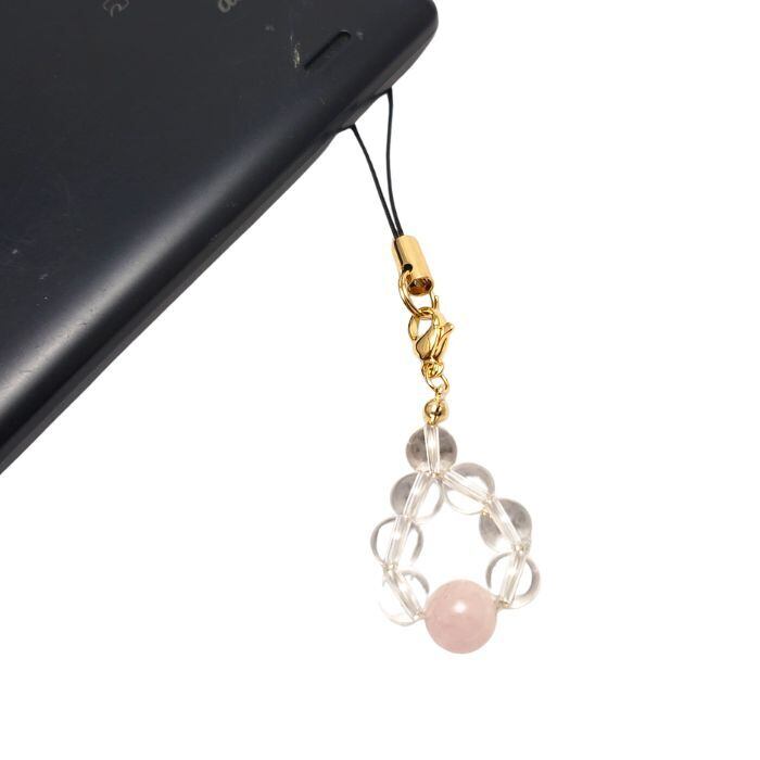 ローズクォーツ クリスタル パワーストーン ストラップ 天然石 携帯ストラップ 紅石英 水晶 ピンク 透明 スマホ お守り プレゼント ラッピング無料 メール便 送料無料 アクセサリー