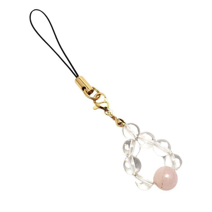 ローズクォーツ クリスタル パワーストーン ストラップ 天然石 携帯ストラップ 紅石英 水晶 ピンク 透明 スマホ お守り  プレゼント ラッピング無料 メール便 送料無料 アクセサリー