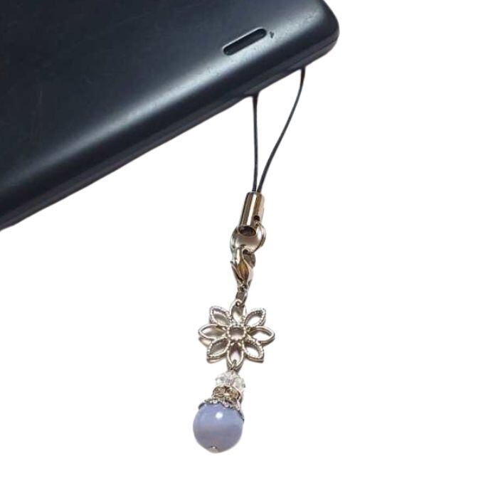 ブルーレースアゲート パワーストーンストラップ 天然石 水晶 クリスタル 花 シルバー 金具銀色 携帯ストラップ スマホ お守り プレゼント ラッピング無料 メール便 送料無料 アクセサリー