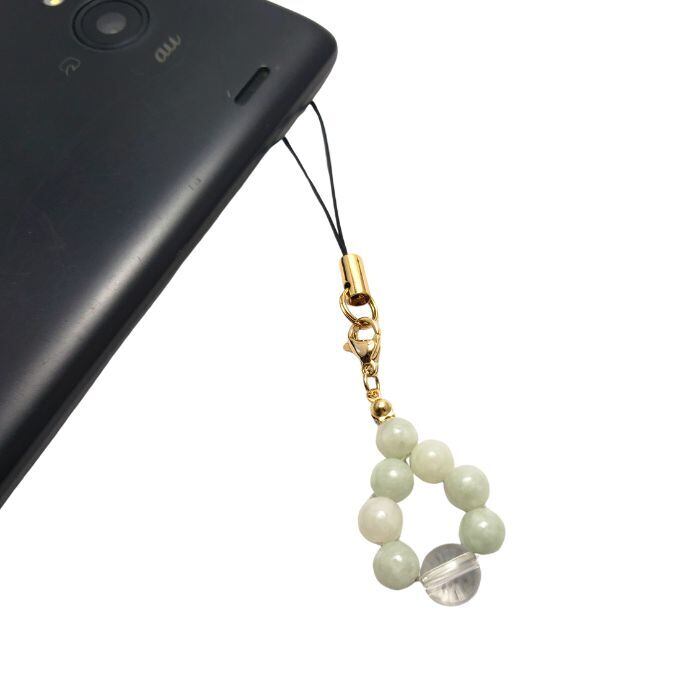 このストラップは、翡翠の他にも水晶を使用しているため、さらにパワフルな効果が期待できます。携帯やスマホに付けることで、いつでも気軽にパワーストーンの効果を感じていただけます。
