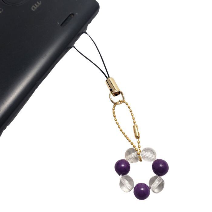 ペットとの交流のお守り フォスフォシデライト パワーストーン ストラップ クリスタル 水晶 天然石 ゴールド スマホ 携帯 アクセサリー ギフト メール便送料無料